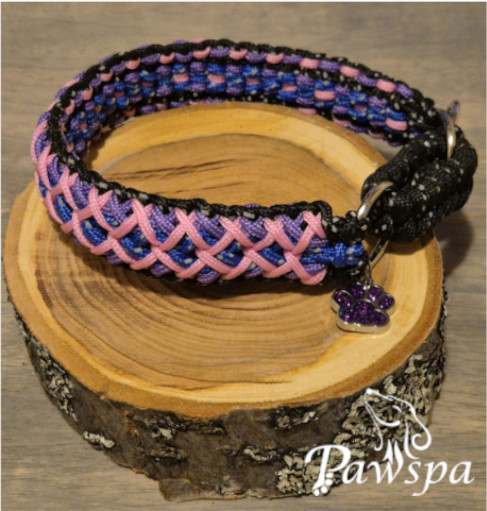 Pawspa-halsbĂ„ndene flettes for hĂ„nd i paracord – et materiale kjent for sin styrke og komfort, samtidig som det gir et eksklusivt uttrykk.