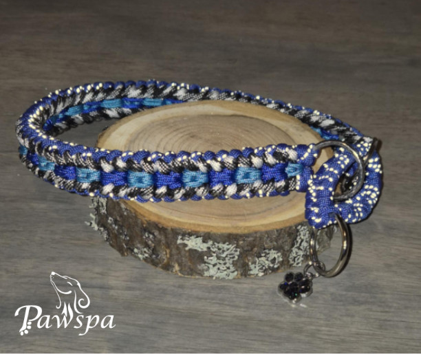 Halsbånd med refleks 43 cm. Hvitspettet, blå og turkis.