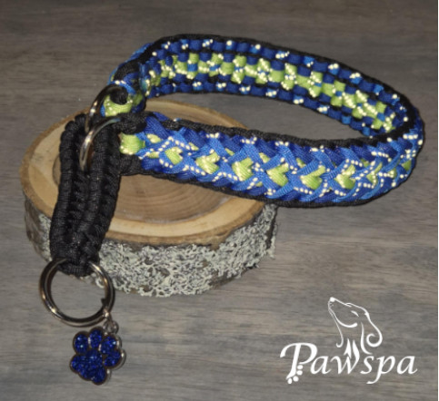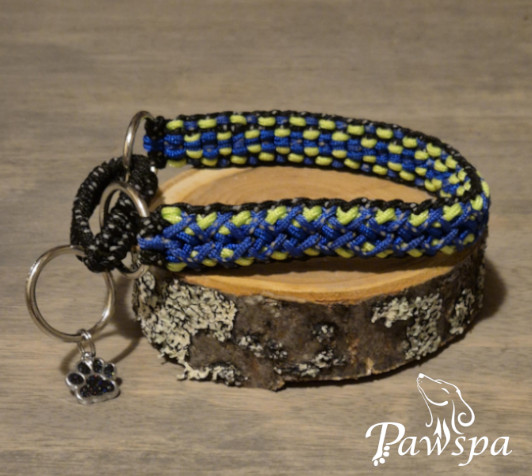 Halsbånd med refleks, 41 cm. Sort, mørk blå, neon-grønn og blå.