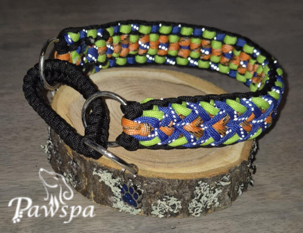 Halsbånd med refleks 31 cm. Sort, neon-grønn, orangespettet og blå.