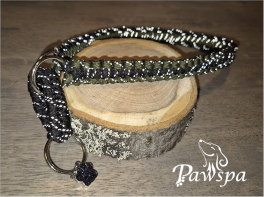 Halsbånd med refleks 28 cm. Militær-grønn og sort.