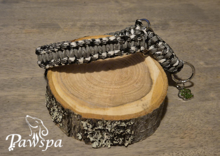 Halsbånd med refleks 28cm. Grå, hvit-spettet.