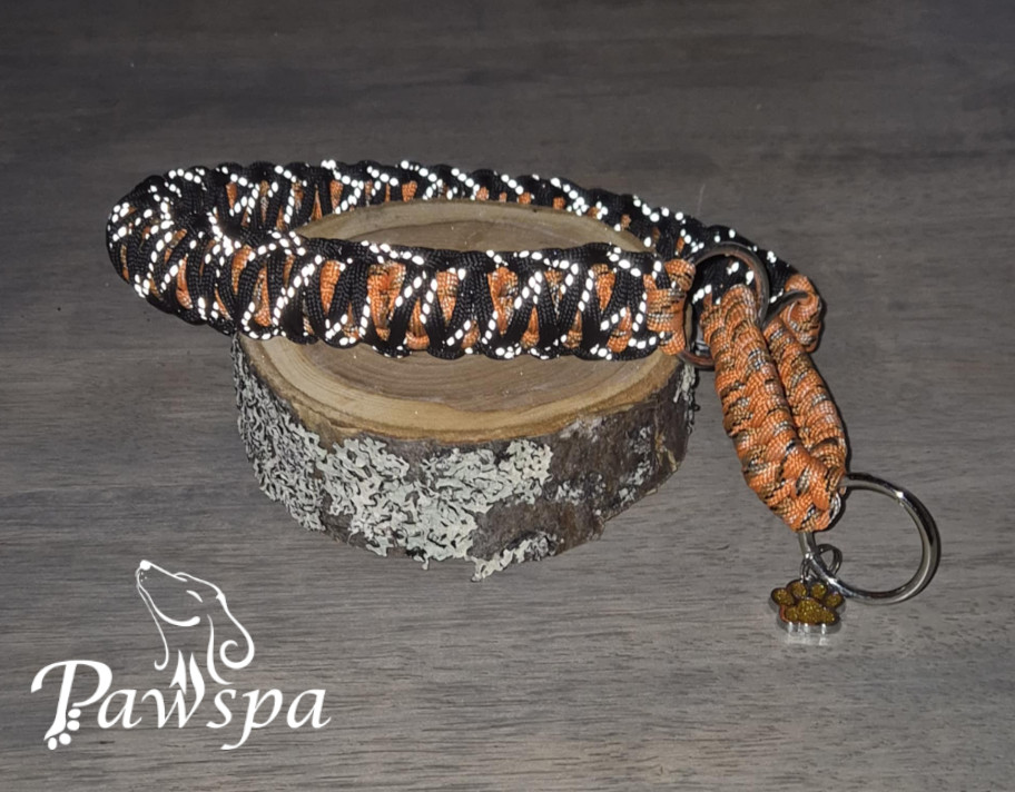 Halsbånd med refleks 41 cm. Orangespettet og sort.